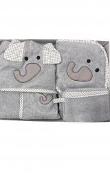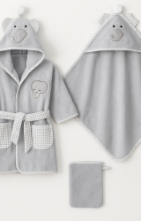 LaraLisa Collection %100 Pamuk Desenli 3'lü (Bornoz-Havlu-Kese) Gri Bebek Çocuk Seti