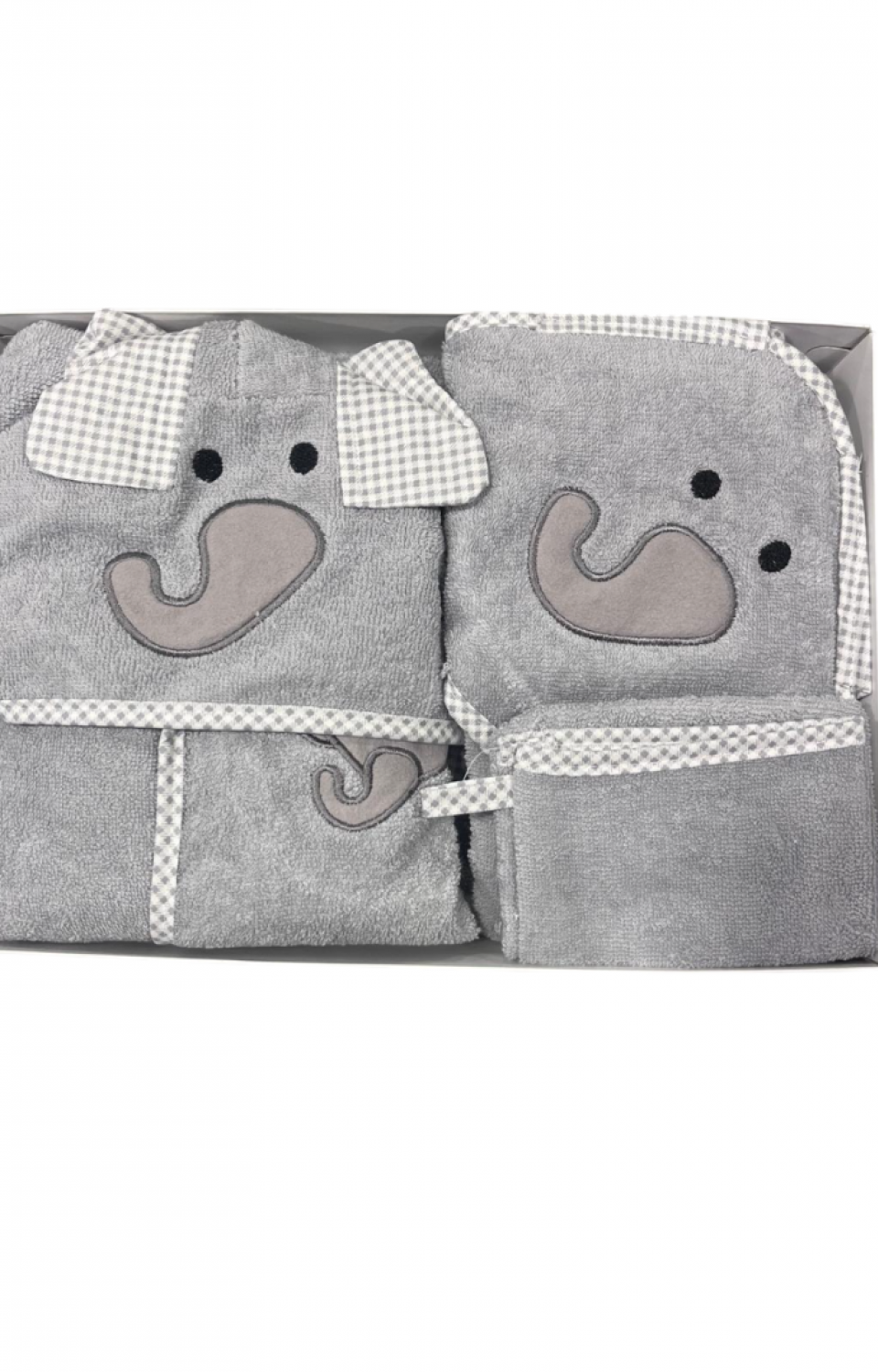 - %100 pamuk materyalden üretilmiş olup, bebeğinizin cildine nazik dokunuşlar sağlar.; - Sevimli hayvan desenleriyle süslenmiş, bebeğinizin banyo zamanlarını eğlenceli hale getirir.; - Üç parçadan oluşan set, bornoz, havlu ve kese içerir; bebeğinizin ihtiyaçlarını tek bir pakette karşılar.; - Bebekler için özel olarak tasarlanmış unisex tasarım, hem kız hem de erkek bebekler için uygundur.; - Türkiye'de üretilmiştir, yerel üretimle desteklenmiş kaliteli bir üründür.