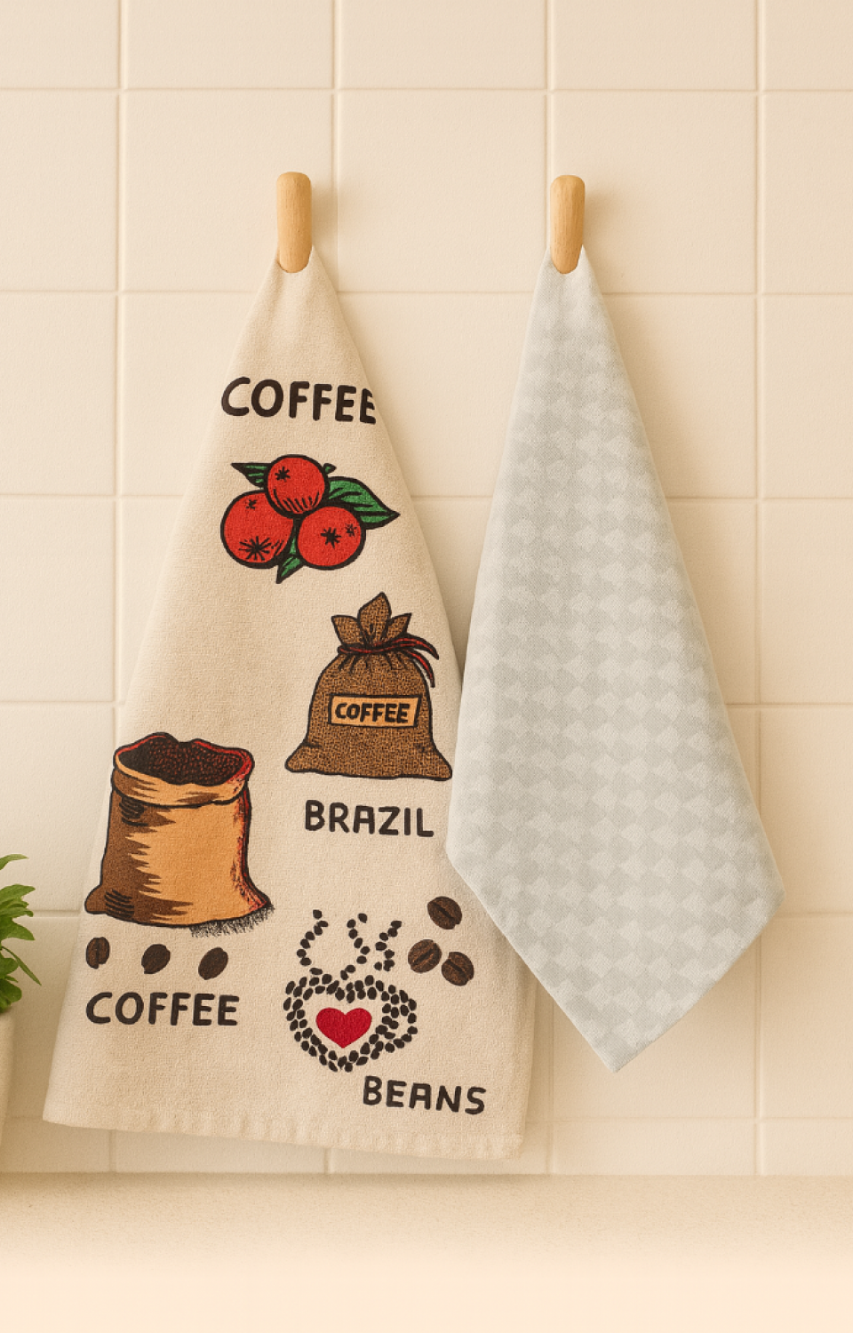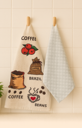 2'li Mutfak Peçetesi %100 Pamuk Dokuma Desenli ve Baskılı 40 x 60 Bej Havlu Seti
