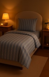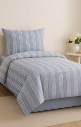 - %60 pamuk ve %40 polycotton karışımı kumaş, yumuşak dokunuşu ve dayanıklılığı ile konforlu bir uyku deneyimi sunar.; - Solmaya karşı dayanıklı yapısı sayesinde uzun süreli kullanımda bile renklerinin canlılığını korur.; - Lastiksiz çarşaf tasarımı, kolayca yatağa uyum sağlar ve pratik kullanım imkanı tanır.; - 160x220 cm boyutlarındaki nevresim, 160x240 cm çarşaf ve 50x70 cm yastık kılıfından oluşan 3 parçalı set, yatak odanız için şık bir tamamlayıcıdır.; - Çizgili deseniyle modern ve zamansız bir görünüm kazandırarak yatak odanızın dekorasyonuna estetik bir katkı sağlar.; - Türkiye menşeli ürün, yerel üretim kalitesini evinizin konforuna taşır.;