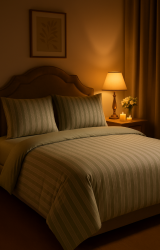 - %60 pamuk ve %40 polycotton karışımı kumaştan üretilmiş, dayanıklı ve uzun ömürlü kullanım sunar.; - Çift kişilik nevresim takımı, 200x220 cm nevresim, 240x260 cm çarşaf ve 50x70 cm yastık kılıflarından oluşur.; - Çizgili deseniyle modern ve şık bir görünüm sağlar, yatak odanızın dekorasyonuna kolayca uyum sağlar.; - Solmaya karşı dayanıklılık özelliği sayesinde renklerin canlılığını uzun süre korur.; - Lastiksiz çarşaf tasarımı ile kolayca yatağınıza yerleştirilebilir ve pratik kullanım imkanı sunar.; - Türkiye'de üretilmiş olup, yerli üretimle kaliteyi ön planda tutar.;