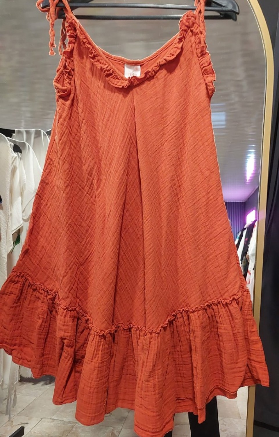 LaraLisa Collection Askısı Bağlamalı Eteği Fırfırlı Müslin Kadın Elbise Kİremit