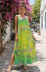 - Zarif tasarımıyla dikkat çeken bu etnik desenli yazlık elbise, günlük kullanım için idealdir.; - Sexy persona'yı yansıtan yırtmaçlı detayları ile feminen bir görünüm sunar.; - Orta kalınlıkta keten kumaşı sayesinde yaz aylarında serinlik ve konfor sağlar.; - V yaka tasarımı ile boynunuzu zarifçe vurgular ve feminen bir hava katar.; - Askılı kol yapısı ile yazın sıcak günlerinde rahat hareket etme özgürlüğü sunar.; - Oversize kalıbı sayesinde rahat bir kullanım imkanı tanırken, modern ve şık bir siluet oluşturur.; - Dijital baskı tekniği ile canlı ve net desenler, elbisenin estetik görünümünü artırır.; - Kemersiz tasarımı ile sade ve şık bir görünüm elde edilirken, bağlama detayları ile özgün bir dokunuş katılır.; - Uzun boyu ve keten dokuma tipi sayesinde hem rahat hem de şık bir yazlık tercihidir.; - Astarsız yapısıyla hafif ve nefes alabilen bir yapıya sahiptir, böylece sıcak havalarda bile konforlu hissedersiniz.; - Cepsiz tasarımı sayesinde minimalist bir görünüm sunarken, kutulu ambalajıyla hediye olarak da idealdir.; %20 tensel kumaş,%25 rayon,%30 keten,%25 ipekten oluşan kumaş dokusuna sahiptir.;