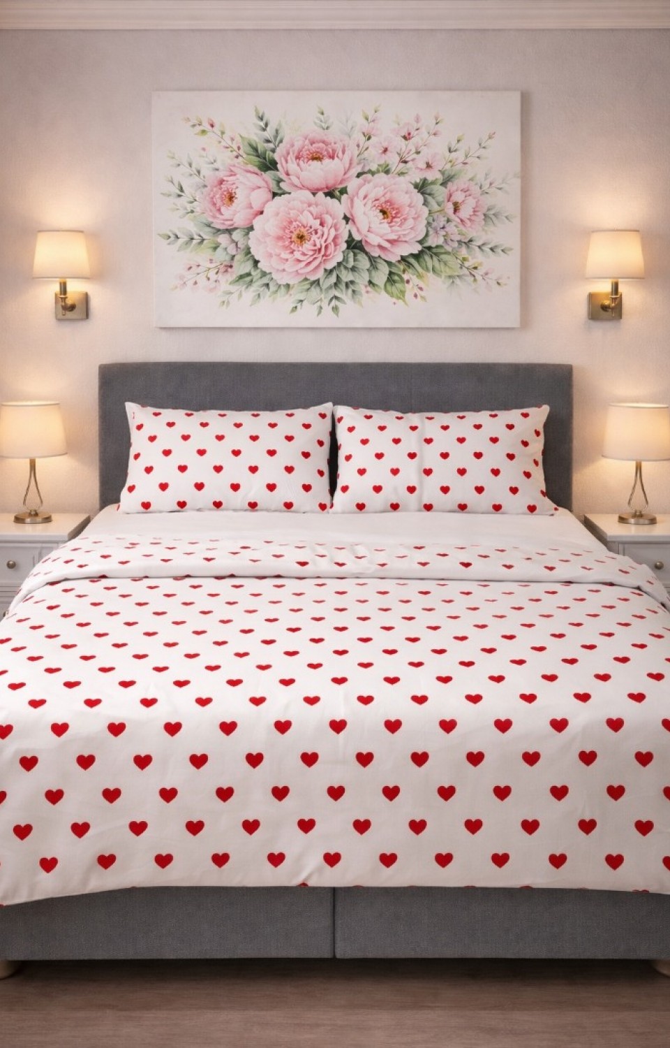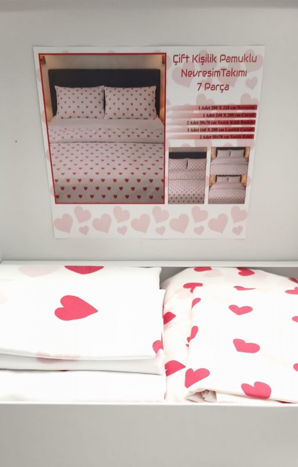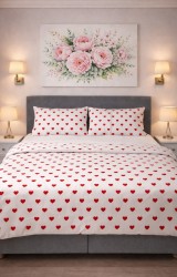 Çift Kişilik Pamuklu 7 Parça Kutulu Kalpli Nevresim Takımı