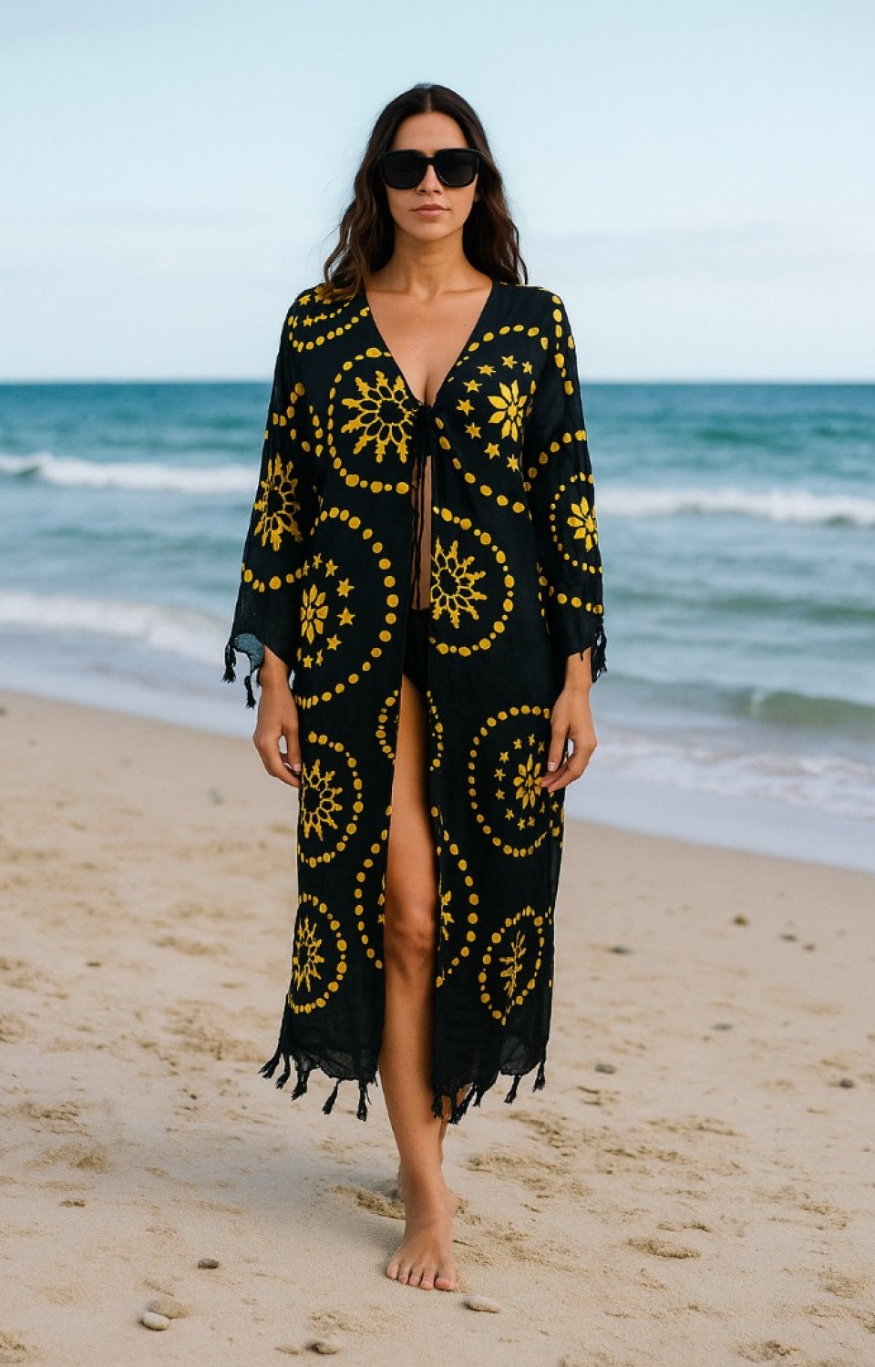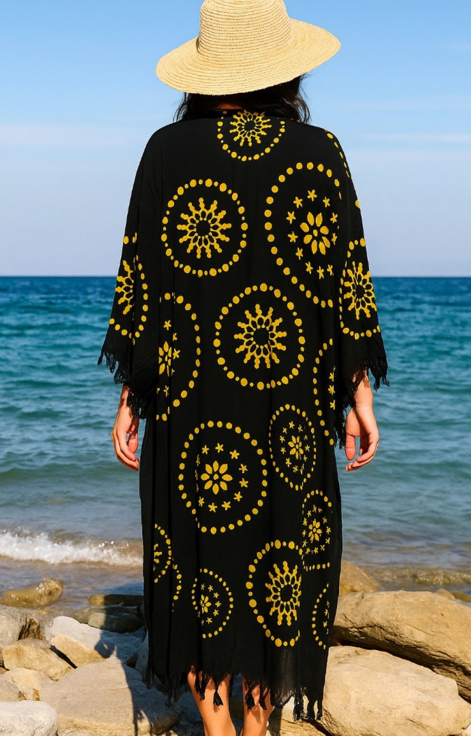 - Zarif desen baskısı ile plajda şıklığınızı koruyun.; - Bağlama veya bağcık detaylarıyla kolayca ayarlanabilir ve rahat bir kullanım sunar.; - Sexy tasarımıyla dikkat çekici bir görünüm kazandırır.; - Püskül detayları ile feminen dokunuşlar ekler.; - Yuvarlak üst silueti sayesinde rahat hareket etme özgürlüğü sağlar.; - Oversize kesimiyle yaz aylarında serinlik ve konfor sunar.; - 30°C'de yıkama imkanı, bakımını kolaylaştırır ve uzun ömürlü kullanım vaat eder.; - Yetişkin kullanıcılar için idealdir; her yaş grubuna hitap eder.; - Türkiye menşeli olmasıyla yerel üretim kalitesini yansıtır.; - Dokuma kumaşı dayanıklılığı arttırarak sık kullanıma uygun hale getirir.; - Etnik deseniyle kültürel motifleri modern tarza taşır.; - Günlük ortamlarda bile stil sahibi görünmenizi sağlar.; - Uzun boyu sayesinde güneşten korurken şık duruşunu da korur.
