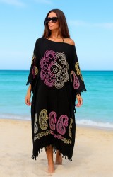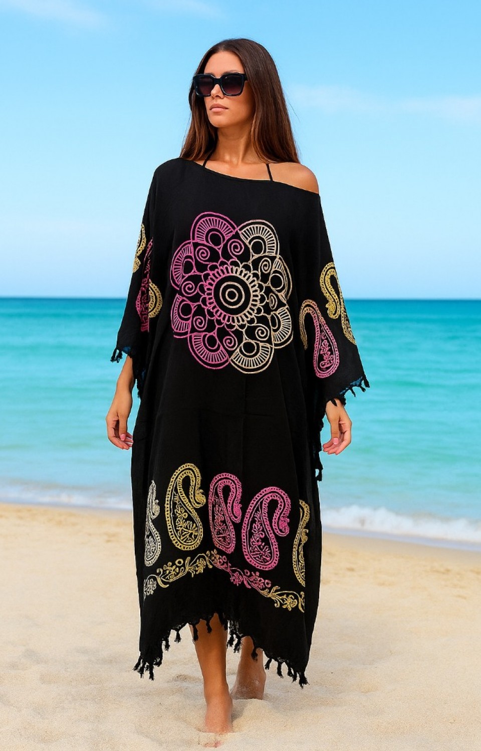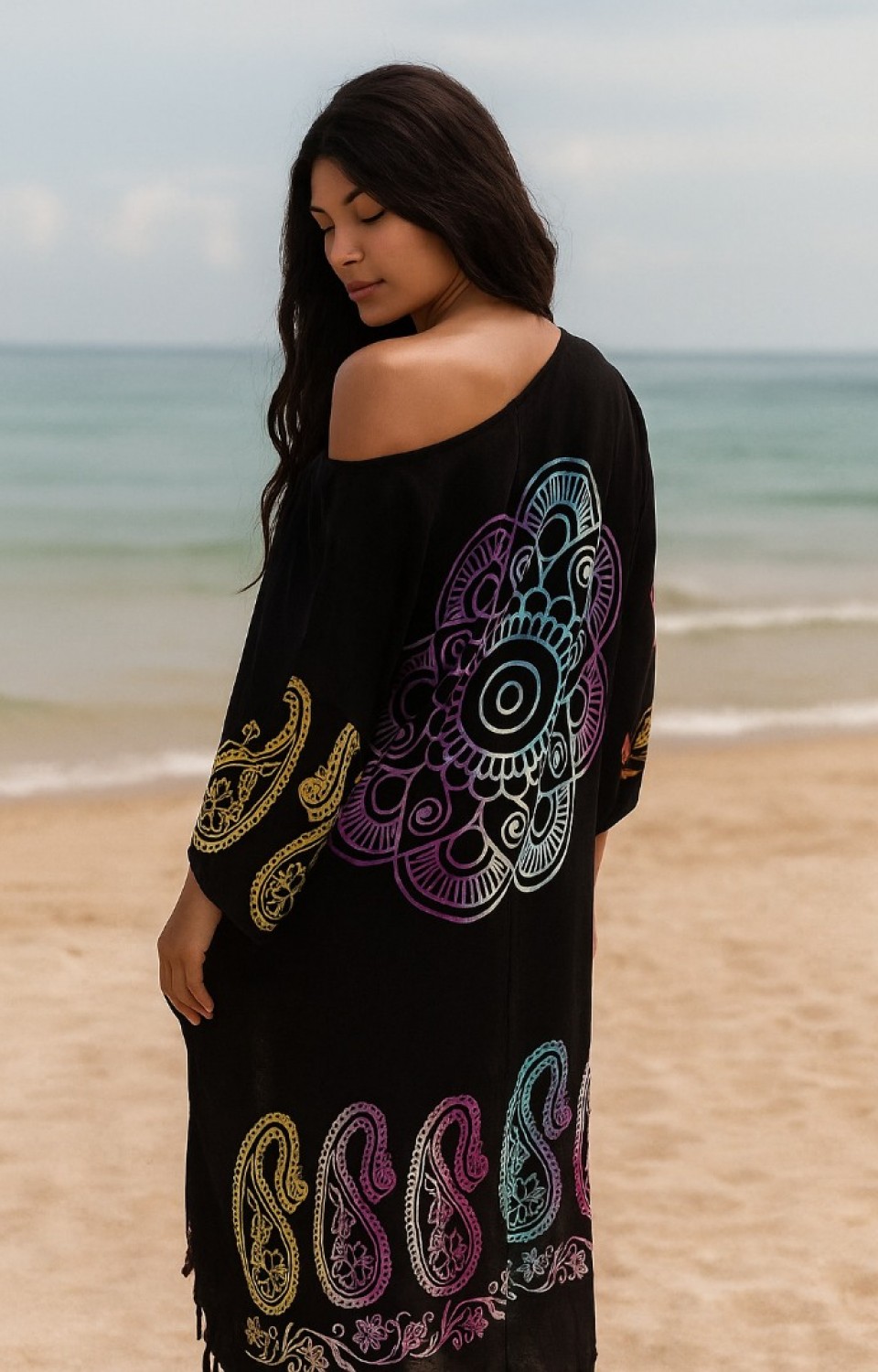 - Zarif desen baskısı ile plajda şıklığınızı koruyun.; - Bağlama veya bağcık detaylarıyla kolayca ayarlanabilir ve rahat bir kullanım sunar.; - Sexy tasarımıyla dikkat çekici bir görünüm kazandırır.; - Püskül detayları ile feminen dokunuşlar ekler.; - Yuvarlak üst silueti sayesinde rahat hareket etme özgürlüğü sağlar.; - Oversize kesimiyle yaz aylarında serinlik ve konfor sunar.; - 30°C'de yıkama imkanı, bakımını kolaylaştırır ve uzun ömürlü kullanım vaat eder.; - Yetişkin kullanıcılar için idealdir; her yaş grubuna hitap eder.; - Türkiye menşeli olmasıyla yerel üretim kalitesini yansıtır.; - Dokuma kumaşı dayanıklılığı arttırarak sık kullanıma uygun hale getirir.; - Etnik deseniyle kültürel motifleri modern tarza taşır.; - Günlük ortamlarda bile stil sahibi görünmenizi sağlar.; - Uzun boyu sayesinde güneşten korurken şık duruşunu da korur.