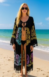 - Zarif desen baskısı ile plajda şıklığınızı koruyun.; - Bağlama veya bağcık detaylarıyla kolayca ayarlanabilir ve rahat bir kullanım sunar.; - Sexy tasarımıyla dikkat çekici bir görünüm kazandırır.; - Püskül detayları ile feminen dokunuşlar ekler.; - Yuvarlak üst silueti sayesinde rahat hareket etme özgürlüğü sağlar.; - Oversize kesimiyle yaz aylarında serinlik ve konfor sunar.; - 30°C'de yıkama imkanı, bakımını kolaylaştırır ve uzun ömürlü kullanım vaat eder.; - Yetişkin kullanıcılar için idealdir; her yaş grubuna hitap eder.; - Türkiye menşeli olmasıyla yerel üretim kalitesini yansıtır.; - Dokuma kumaşı dayanıklılığı arttırarak sık kullanıma uygun hale getirir.; - Etnik deseniyle kültürel motifleri modern tarza taşır.; - Günlük ortamlarda bile stil sahibi görünmenizi sağlar.; - Uzun boyu sayesinde güneşten korurken şık duruşunu da korur.