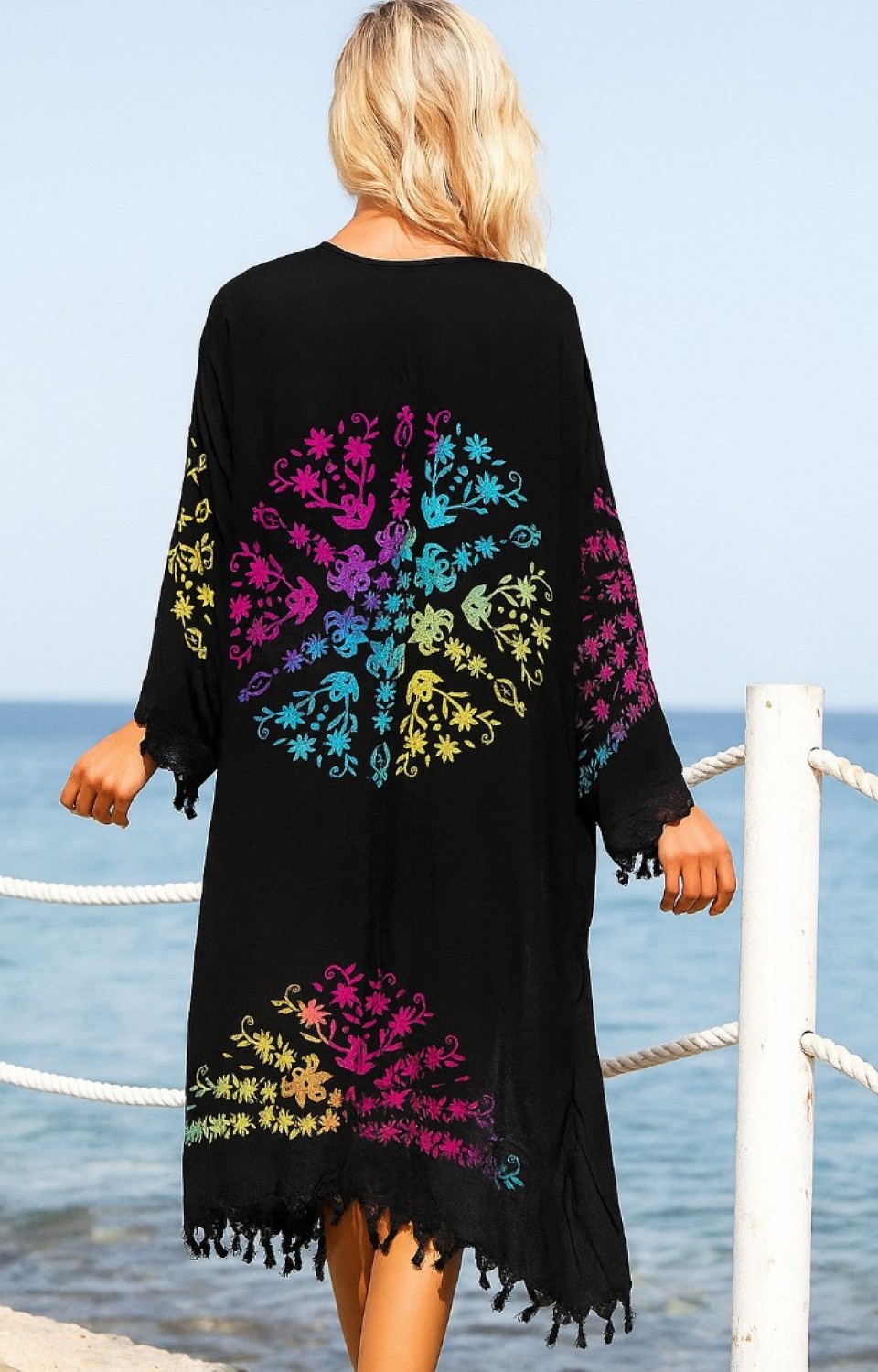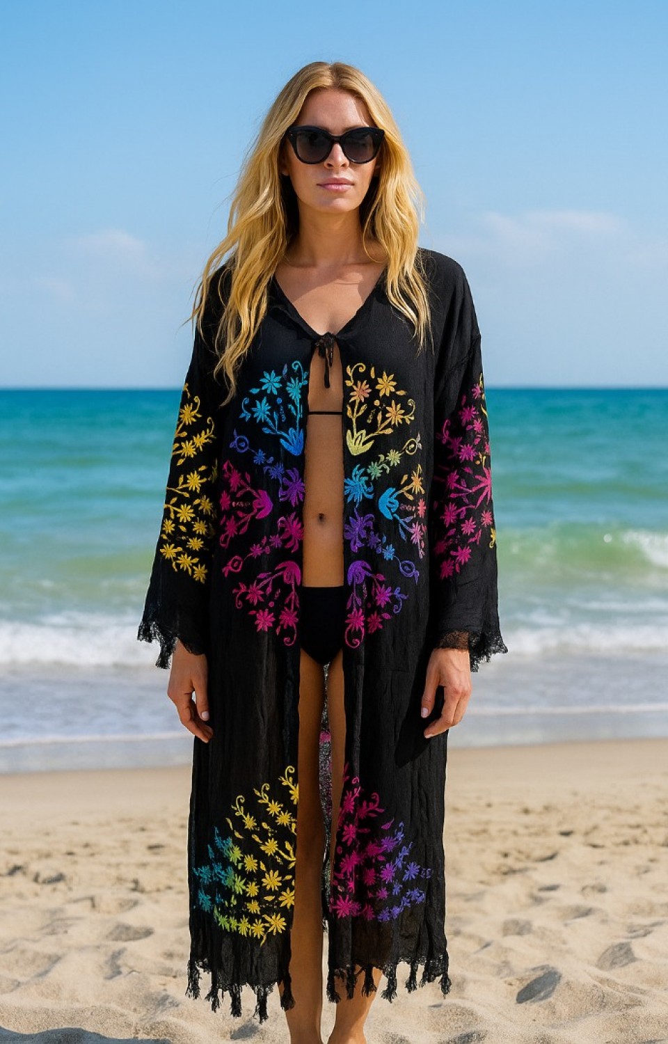 - Zarif desen baskısı ile plajda şıklığınızı koruyun.; - Bağlama veya bağcık detaylarıyla kolayca ayarlanabilir ve rahat bir kullanım sunar.; - Sexy tasarımıyla dikkat çekici bir görünüm kazandırır.; - Püskül detayları ile feminen dokunuşlar ekler.; - Yuvarlak üst silueti sayesinde rahat hareket etme özgürlüğü sağlar.; - Oversize kesimiyle yaz aylarında serinlik ve konfor sunar.; - 30°C'de yıkama imkanı, bakımını kolaylaştırır ve uzun ömürlü kullanım vaat eder.; - Yetişkin kullanıcılar için idealdir; her yaş grubuna hitap eder.; - Türkiye menşeli olmasıyla yerel üretim kalitesini yansıtır.; - Dokuma kumaşı dayanıklılığı arttırarak sık kullanıma uygun hale getirir.; - Etnik deseniyle kültürel motifleri modern tarza taşır.; - Günlük ortamlarda bile stil sahibi görünmenizi sağlar.; - Uzun boyu sayesinde güneşten korurken şık duruşunu da korur.