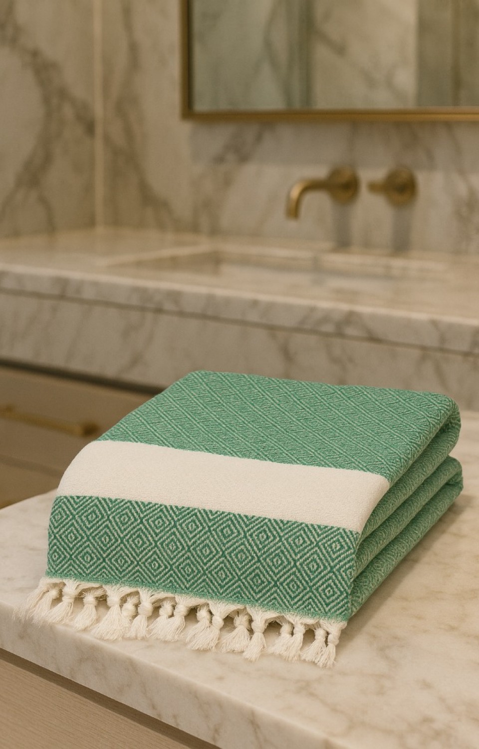 LaraLisa Collection Elmas Desen %100 Pamuk 100 x 180 cm Peştemal Plaj Banyo Havlusu Yeşil