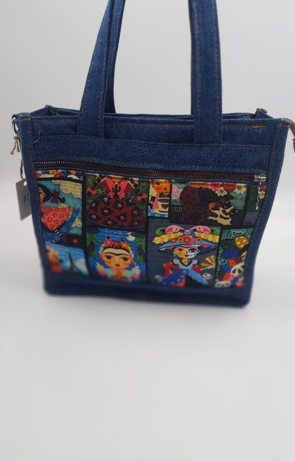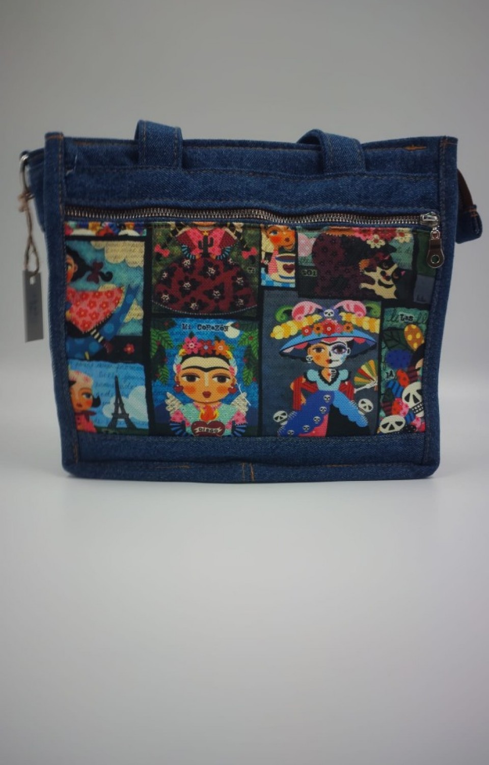 Sanatın ikonik yüzlerini denimle buluşturduk. Frida Kahlo ve nostaljik illüstrasyonlarla bezenmiş bu özel tasarım çanta, sadece bir aksesuar değil, bir duruş sergiliyor. Dayanıklı denim yapısı, geniş iç hacmi ve sanat dolu detaylarıyla her adımda dikkatleri üzerinize çekin.