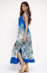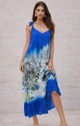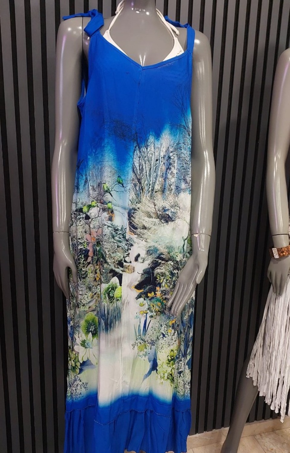 - V yaka tasarımı ile feminen bir görünüm sunar.; - Çift cepli yapısı, pratik kullanım imkanı sağlar.; - Dijital baskı tekniği ile canlı ve net desenler elde edilir.; - Askılı kol boyu, yaz aylarında serinlik ve rahatlık sunar.; - Fiyonk detayı ile zarif bir dokunuş katılır.; - Eteği belden açılan kesimiyle modern ve şık bir siluet oluşturur.; - Astarsız yapısı sayesinde hafif ve konforlu bir kullanım sağlar.; - Midi boyu, hem günlük hem de özel günlerde rahatlıkla tercih edilebilir.; - Genç yaş grubuna hitap eden dinamik ve trend bir tasarıma sahiptir.; - Türkiye'de üretilmiş olup, yerel üretim kalitesini yansıtır.;