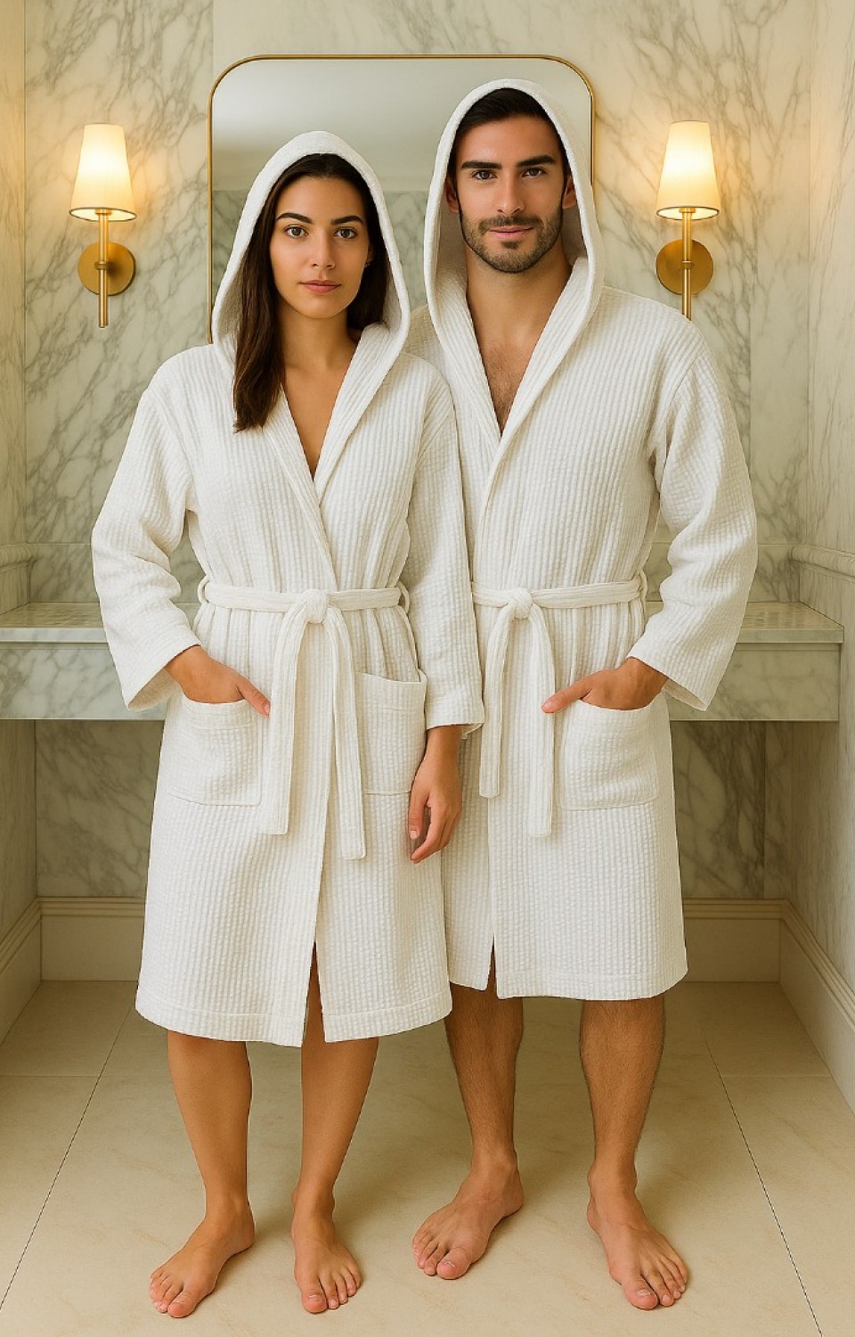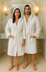 En Büyük Avantajı: Gözenekli yapısı sayesinde suyu havlu bornozlar kadar iyi çeker ama çok daha hızlı kurur. Bu sayede koku yapmaz ve bakteri üretimi azalır. Doku Hissi: Cilde hafif bir masaj etkisi yapan, dolgun ama hafif bir yapıdadır. Üzerinizde ağırlık yapmaz. Tasarım: Geniş cepler, şık manşetler ve (ilk görsel için) kullanışlı kapüşon detayı.
