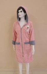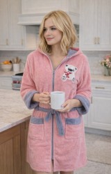 LaraLisa Collection Kapüşonlu Fermuarlı Cepli Sabit Kuşak Detaylı Pamuklu Bornoz