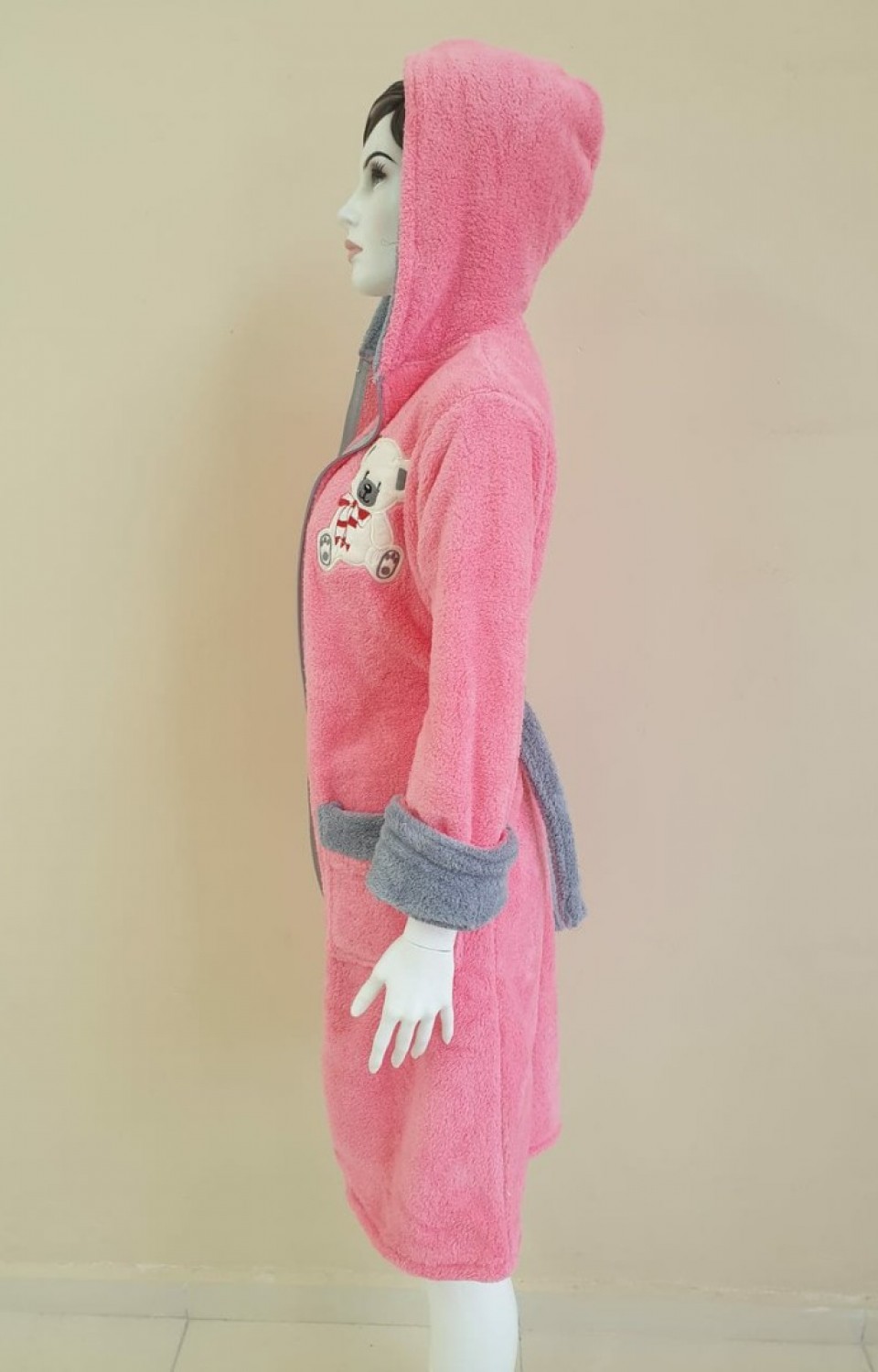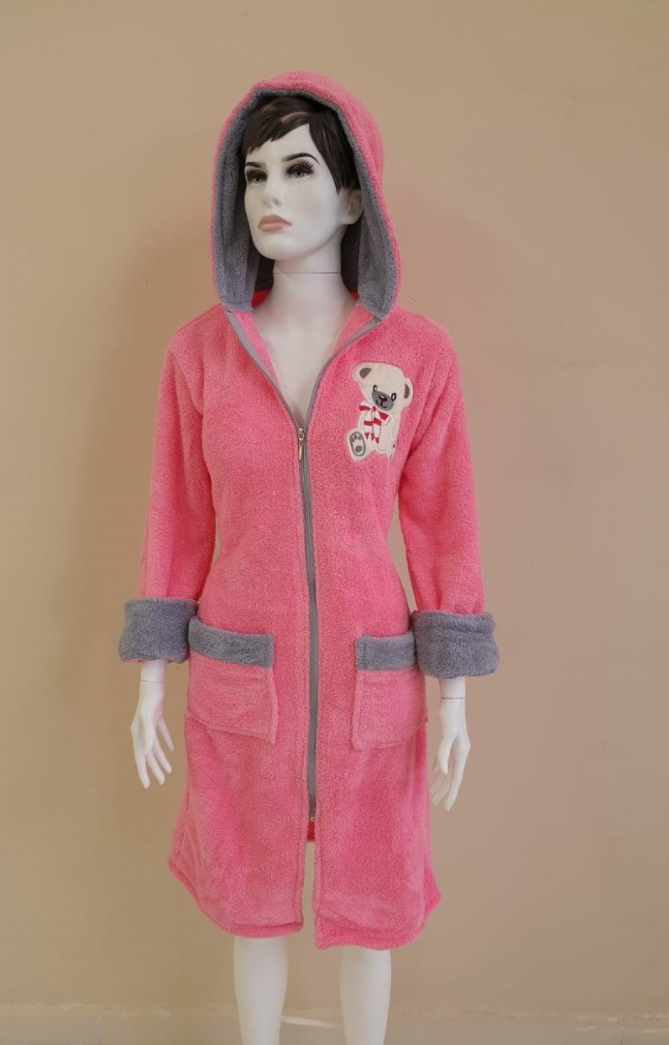 - Rahat ve şık tasarımıyla her zaman tercih edilen kapüşonlu bornoz, soğuk havalarda sizi sıcak tutar.; - Pratik fermuar detayı sayesinde kolayca giyilip çıkarılabilir ve hızlı bir şekilde vücudunuza oturur.; - Yan cepleri ile eşyalarınızı yanınızda taşıyabilirsiniz; telefon, anahtar veya cüzdan gibi küçük eşyalarınız için idealdir.; - Sabit kuşak detayı ile bornozunuzu vücudunuza tam olarak oturtabilir ve konforlu bir kullanım sağlayabilirsiniz.; - Yüksek kaliteli pamuklu materyali sayesinde yumuşak dokusuyla cildinize nazik davranır ve uzun süreli konfor sunar.; - Midi boyu ile hem ev içinde hem de dışarıda rahatlıkla kullanılabilir; şıklığınızı korurken sıcak kalmanızı sağlar.; - Tekil ürün olarak sunulan bu bornoz, kişisel kullanım için idealdir ve hediye olarak da tercih edilebilir.; - Türkiye'de üretilmiş olup, yerel iş gücüne destek olurken kaliteli bir ürün deneyimi sunar.;
