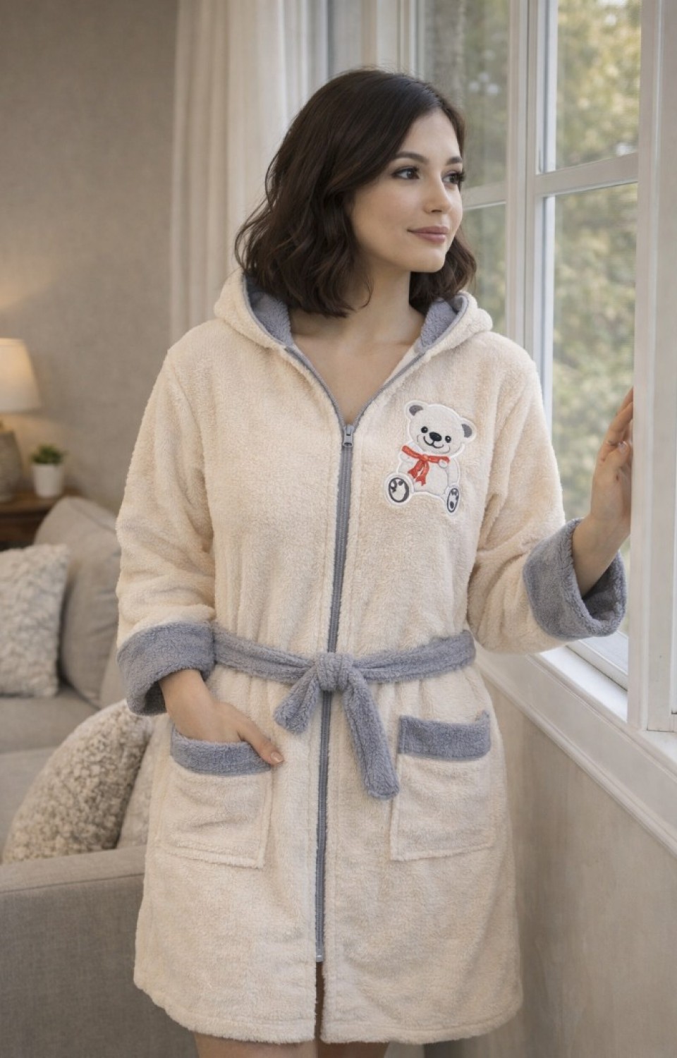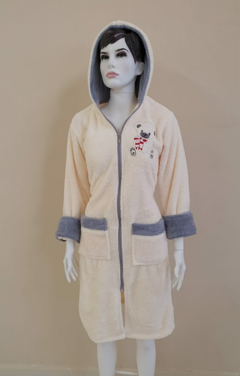 - Rahat ve şık tasarımıyla her zaman tercih edilen kapüşonlu bornoz, soğuk havalarda sizi sıcak tutar.; - Pratik fermuar detayı sayesinde kolayca giyilip çıkarılabilir ve hızlı bir şekilde vücudunuza oturur.; - Yan cepleri ile eşyalarınızı yanınızda taşıyabilirsiniz; telefon, anahtar veya cüzdan gibi küçük eşyalarınız için idealdir.; - Sabit kuşak detayı ile bornozunuzu vücudunuza tam olarak oturtabilir ve konforlu bir kullanım sağlayabilirsiniz.; - Yüksek kaliteli pamuklu materyali sayesinde yumuşak dokusuyla cildinize nazik davranır ve uzun süreli konfor sunar.; - Midi boyu ile hem ev içinde hem de dışarıda rahatlıkla kullanılabilir; şıklığınızı korurken sıcak kalmanızı sağlar.; - Tekil ürün olarak sunulan bu bornoz, kişisel kullanım için idealdir ve hediye olarak da tercih edilebilir.; - Türkiye'de üretilmiş olup, yerel iş gücüne destek olurken kaliteli bir ürün deneyimi sunar.;