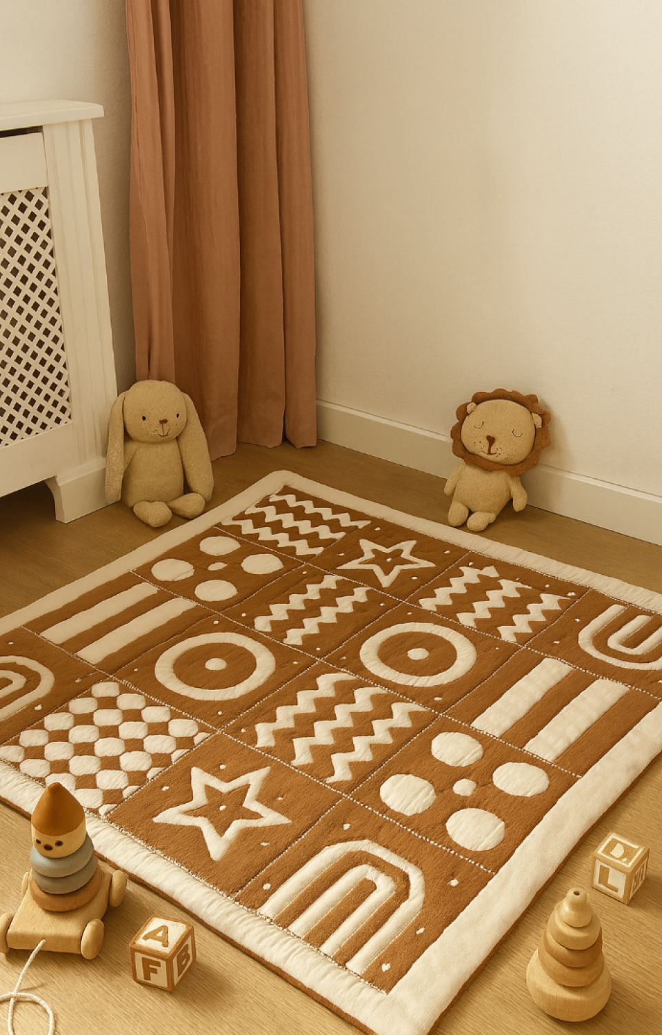 - Yumuşak dokusuyla çocukların konforunu ön planda tutan, çift taraflı kullanım imkanı sunan oyun minderi. - 100x100 cm boyutlarındaki geniş tasarımı ile çocukların rahatça oynayabileceği bir alan sağlar. - Kolay temizlenebilir yapısı sayesinde pratik kullanım sunar; leke tutmaz özelliği ile ebeveynlerin işini kolaylaştırır. - Pamuklu örme kumaş kullanımı, nefes alabilir yapıda olup terlemeyi minimize eder ve uzun süreli konfor sağlar.