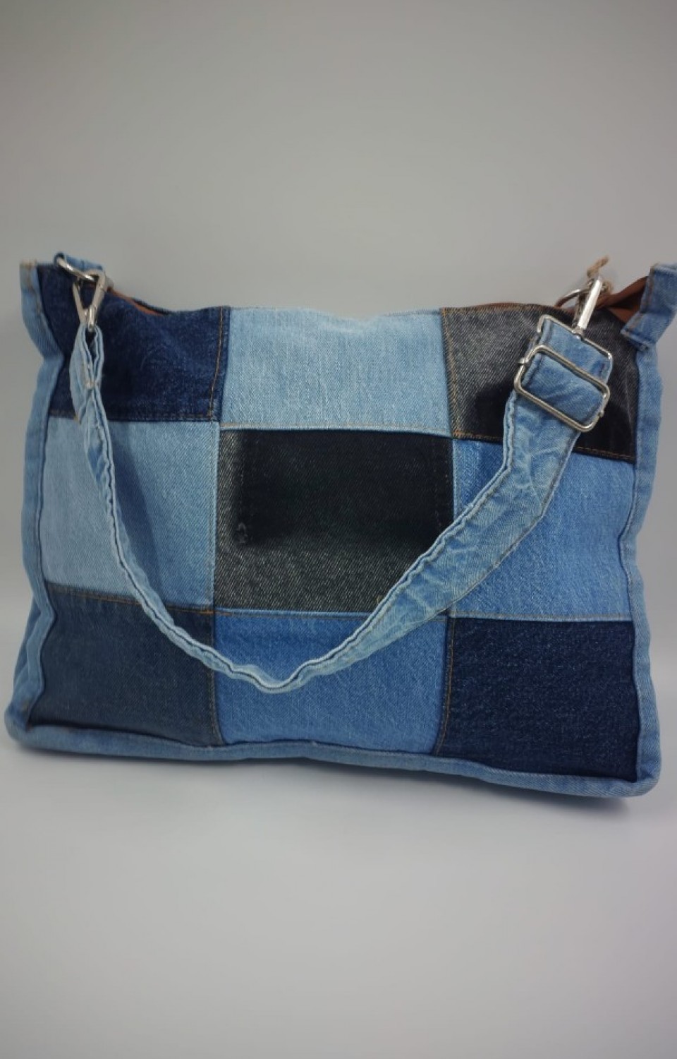 Farklı kot tonlarının bir araya gelmesiyle oluşan bu eşsiz tasarım, el işçiliğinin sıcaklığını modern sokak stiliyle birleştiriyor. Her bir parçası özenle seçilmiş denim kumaşlardan üretilen bu çanta, hem omuzda hem de çapraz kullanım seçeneğiyle gün boyu size konfor sunar.
