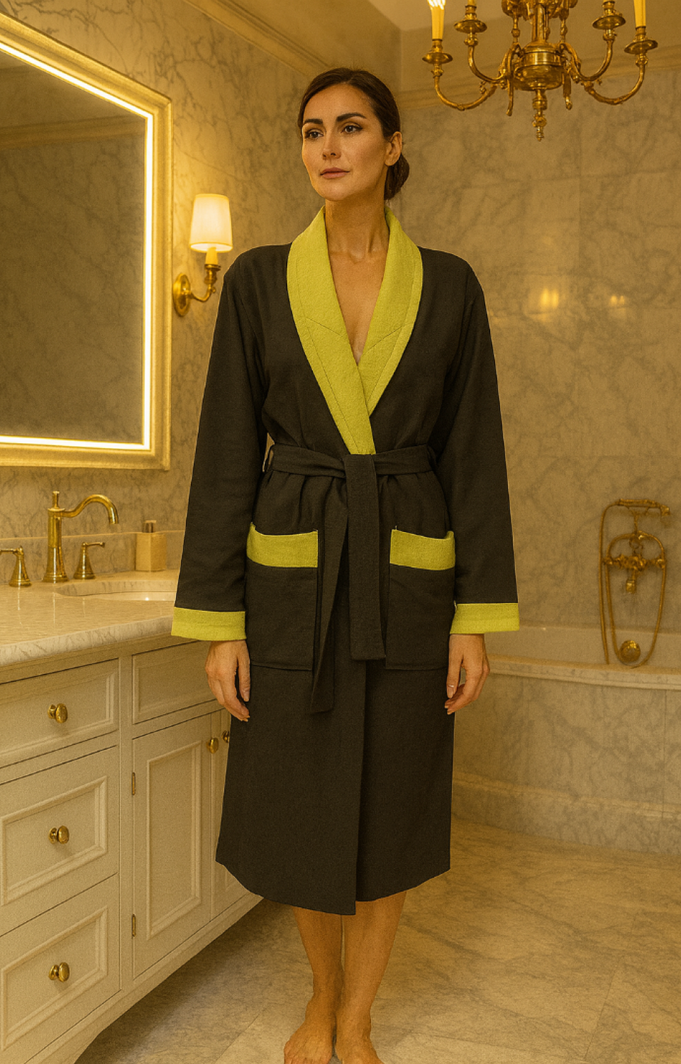 LaraLisa Collection Şal Yaka Cepli İnce Pike Kumaş Unisex Kadın Erkek Sabahlık Bornoz