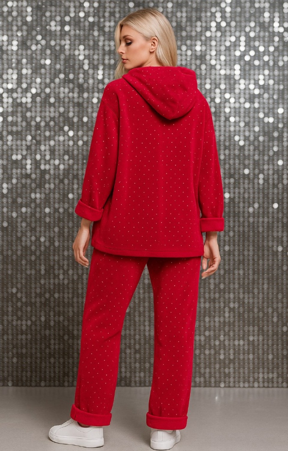 LaraLisa Collection Taşlı Fermuarlı Kadın Alt Üst Takım Kırmızı